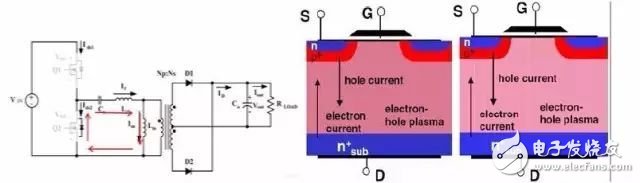 -传统MOSFET此时电子电流经沟道区,从而减少空穴数量