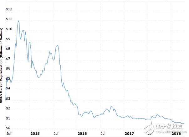 GoPro 2017年收入从2015年的16亿美元降至11.7亿美元。GoPro目前的企业价值为2017年收入的0.5倍。该公司去年亏损1.83亿美元,预计今年亏损幅度将收窄。去年的毛利率从2014年的45%降至30%左右。