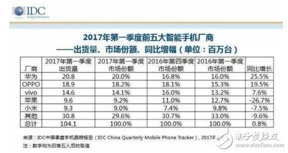 早在5月4日,市场调研机构IDC公布2017年第一季度中国智能手机市场报告。中国智能手机市场出货量同比增长0.8%,华为、OPPO、vivo等国内厂商超苹果,拔得销量前三甲。苹果中国市场的销量同比减少26.7%。显然,苹果准备在2017年下半年进行反击,夺回失去的市场份额。