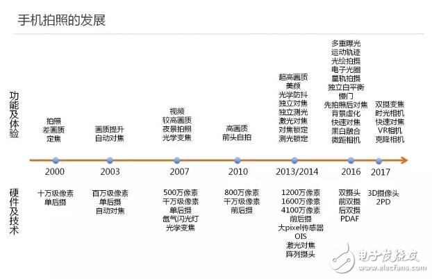 手机拍照技术从最初的10万级像素,到2017年的千万级摄像头,从最初的单摄像头到今天的3D摄像头,从最初的拍照技术到今天的人像摄影功能,应用层出不穷。手机拍照给消费者生活带来翻天覆地的变化,到今天才会成为手机应用的刚需。消费者借助手机拍照达成了一个理想的生活状态。