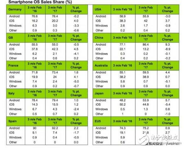 报告列举了和去年同期比较结果,iOS在中国市场份额下跌8.9个百分点,从22.1%回落至13.2%。苹果竞争对手Android仍然是中国的主导力量,占全国智能手机市场份额达到86.4%,同比增长9.3个百分点。虽然iPhone 7和iPhone 7 Plus仍然是中国市场畅销设备,但苹果无法与当地厂商竞争,如OPPO和VIVO,他们以更高的速度生产更便宜的智能手机,这些智能手机让中国消费者更容易获得。