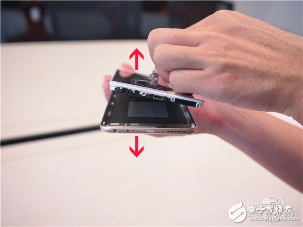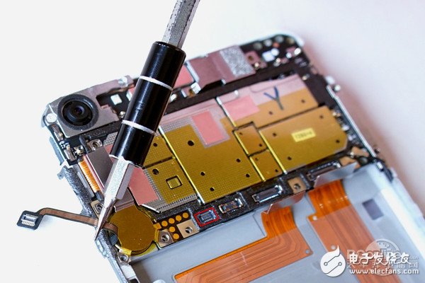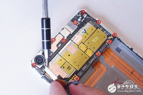 一般而言采用一体化金属机身设计的手机都需要先卸下底部的梅花螺丝,才能分离金属中框。小编已经手快把它们拧出来了。