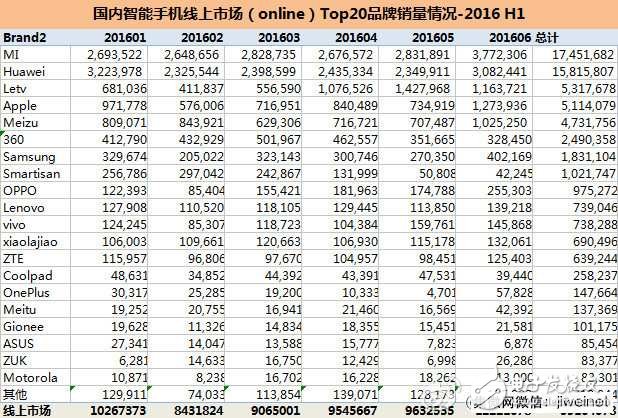 单从线上出货看,小米依然是一哥,线上销量达到1745万部。2~5名分别是华为、乐视、苹果和魅族。