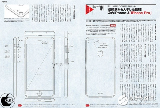 传言称苹果今年秋天发布的 iPhone 7 会移除耳机接口,今天日本杂志 Mac Fan 分享了疑似为 iPhone 7 Pro 的设计图,根据设计图的尺寸,iPhone 7 Pro 尺寸与 iPhone 6s Plus 相差不多,而且会移除耳机接口并配备双 iSight 摄像头。早期的传言提到苹果移除 3.5毫米耳机接口是为了降低设备厚度,不过今天的报告提到苹果会继续维持 iPhone 厚度。