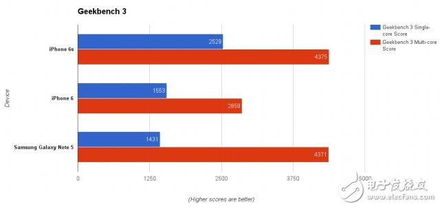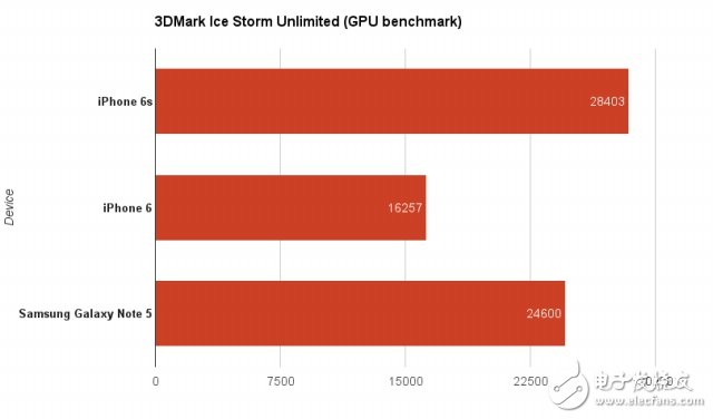 GPU方面,苹果宣称A9芯片比A8增强90%, 3DMark 的跑分成绩单上,iPhone6s再次秒杀三星最新的Note5.之所以用iPhone6s跑分,只是想告诉那些安卓用户们,手机的实际性能高低与它的处理器是几核的没有必然联系。尽管安卓手机的处理器很早就有8核了,但iPhone依然维持iPhone4s时代的双核,性能却依然强劲。在与旧版 iPhone的对比中就可以明显看到这种提升,当然这得益于处理器频率的增加,以及更高的运行内存——是的,iPhone的内存终于升到2G了。