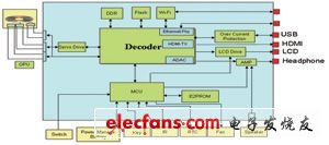 Decoder:BD播放机的解码器要求能够解码1920×1080P的全高清的视频信号,包括H.264/VC-1/MPEG等,MTK、博通的芯片均能满足要求。本文列举的解码芯片内置了以太网,HDMI,ADAC等芯片,集成度较高。实际选型时根据产品开发的需求,具体选择。