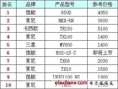 数码相机排行榜,如今数码相机已走进了千家万户,成为人们外出旅游,聚会留念必不可少的一种数码产品,电子发烧友推出的数码相机排行榜是根据各网站网友关注与购买所做出的统计,同时发烧友也对各排名相机做出相应的评价及家用数码相机推荐。希望下面数码相机排行榜对将要入手相机的朋友能有所帮助