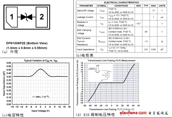 图1:AZ4217-01F ESD保护组件的特性 图。(杂志放c,d)