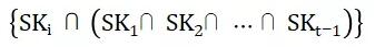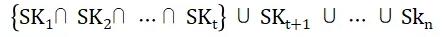 在设置门限t/n, t≤n的情况下,一个分布式私钥集合中各个私钥是对等的。但完成相应的操作时需要超过t个分布式私钥的共同参与,所以表现出分布式私钥间与或的关系。如下所示: