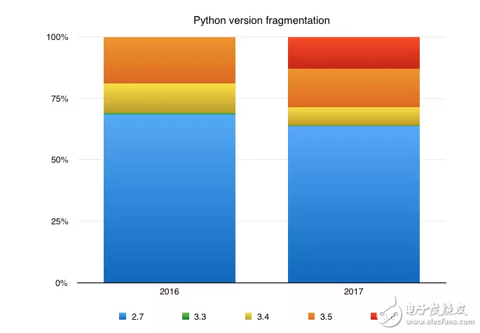Python去年就在 Hacker News 和各种技术论坛上受到了很多关注,尽管 Python 3 是在2008年发布,但是仍有超过70%的商业项目使用 2.7版本。