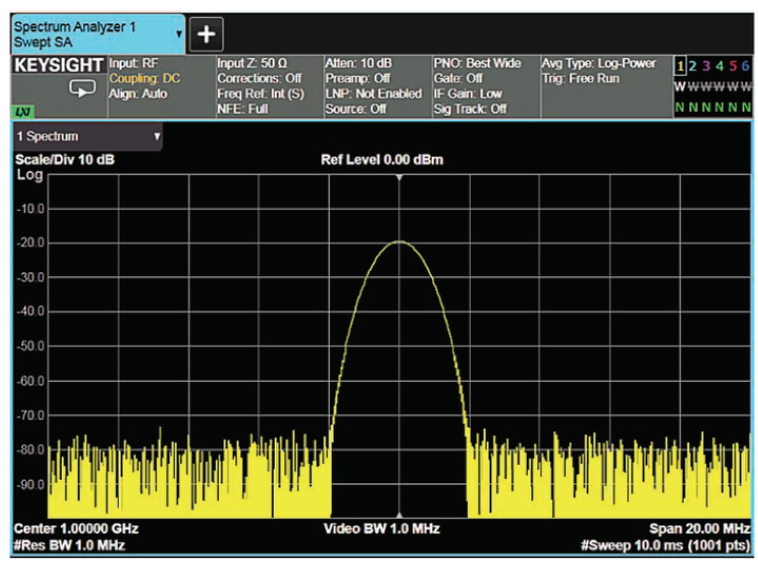 在这种情况下,用奇数号的数据点来显示信号收集单元中的最大值,用偶数号的数据点来显示最小值。如图 所示。正态检波模式和取样检波模式在图中比较。由于取样检波器在测量噪声时非常有效,所以它常被用于噪声游标应用。同样在信道功率测量和邻道功率测量中需要一种检波类型,可以提供无任何倾向 的结果,此时适合使用峰值检波。对没有平均检波功能的频谱仪来说,取样检波是最好的选择。
