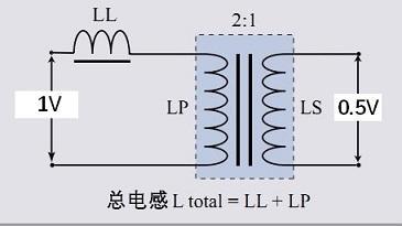 假如在原边施加1V的测量电压,变压器的匝比是2:1,则副边的电压为0.5V,这是变压器原理。原边测得的总的电感包含了漏感。为了测量漏感,要想法使主电感LP为零,然后测量得到的就是漏感。但是如何使主电感量为零呢?