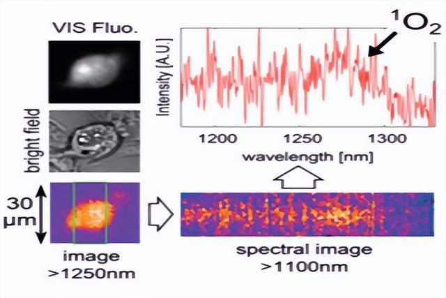 PDT是将光敏剂(PS)掺入异常组织,然后用可见光照射,使其通过II型光化学途径将能量传递给基态氧,产生单线态氧(可以通过其微弱的1270 nm直接检测到)排放)。 由于对阐明单线态氧在亚细胞水平上的生化作用的特殊兴趣,已经提出了几种高空间分辨率方法来使用单个光电倍增管( PMT)、线性InGaAs探测器阵列、或二维InGaAs探测器。