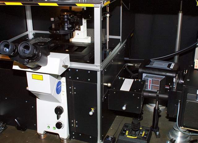 图 2:实验装置的 NIR 路径包括与 SpectraPro 2500i 成像光谱仪耦合的 Princeton Instruments NIRvana:640 二维 InGaAs 探测器。照片由查尔斯大学 Marek Scholz 博士提供