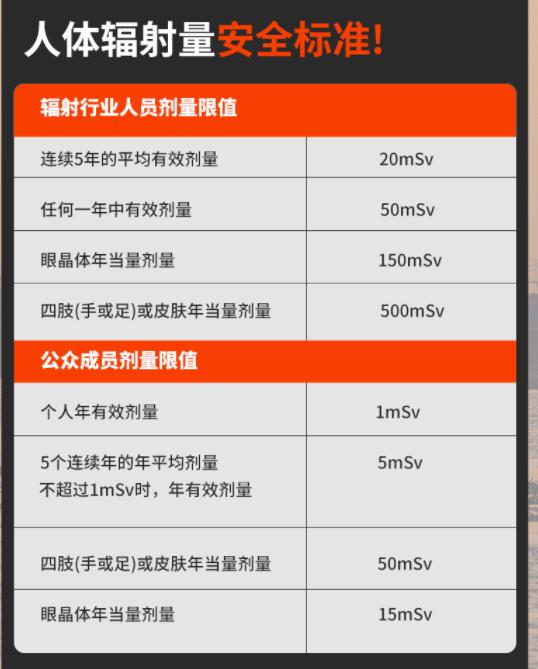 其中,这个对人体造成伤害的核辐射剂量,我国也有一个明确规定: