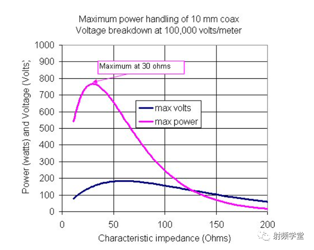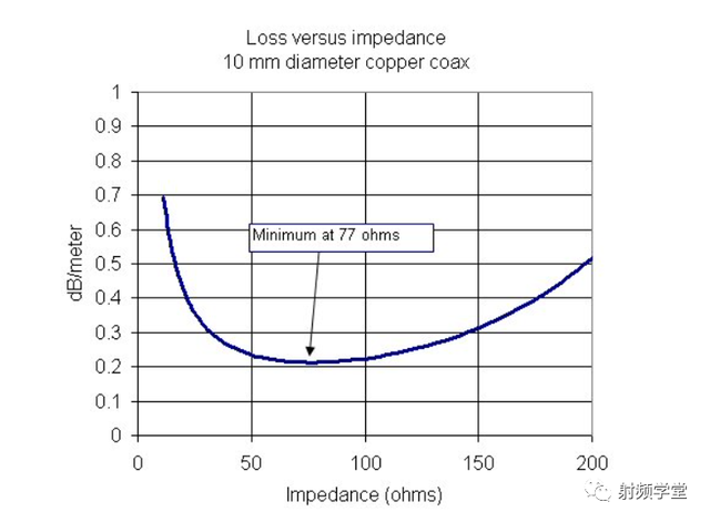 射频电路设计一个永恒的话题就是功率和功耗。如何传输最大的功率?如何把功耗降到最小?无耗只存在于理想中,有耗才是现实。50 欧姆就是在最大功率和最低损耗的平衡中得到的一个值。