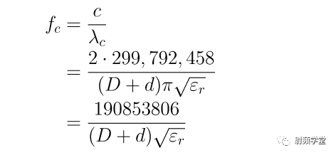 这个截止频率就是同轴线中工作的最低高次模频率。我们上文说过了,同轴线可以在很宽的频带内只传输TEM模,第一个高次模 TE11模的截止频率和内外半径成反比,如上文公式。对于一个特征阻抗为50欧姆的同轴传输线,D和d的关系就定下来了。很直观的可以看出来,同轴线的直径越大,截止频率越低。填充的介质介电常数越高,截止频率越低。这个在线缆、接头选择上尤为重要。通常线缆和接头的截止频率要低于这个理想的截止频率,通常为90%左右。