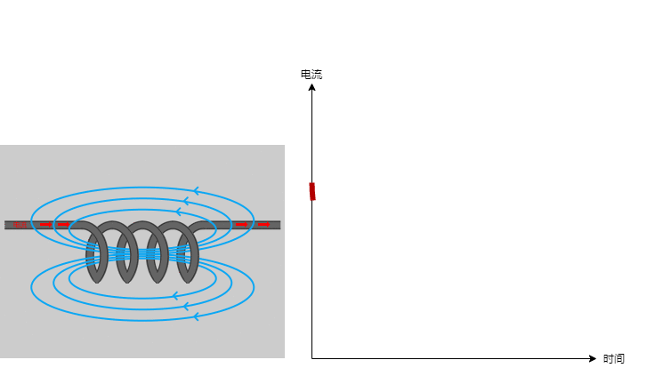 当电流开始流过线圈时,磁场开始增强...然后稳定下来...这样线圈就通过磁场存储了一些电能。