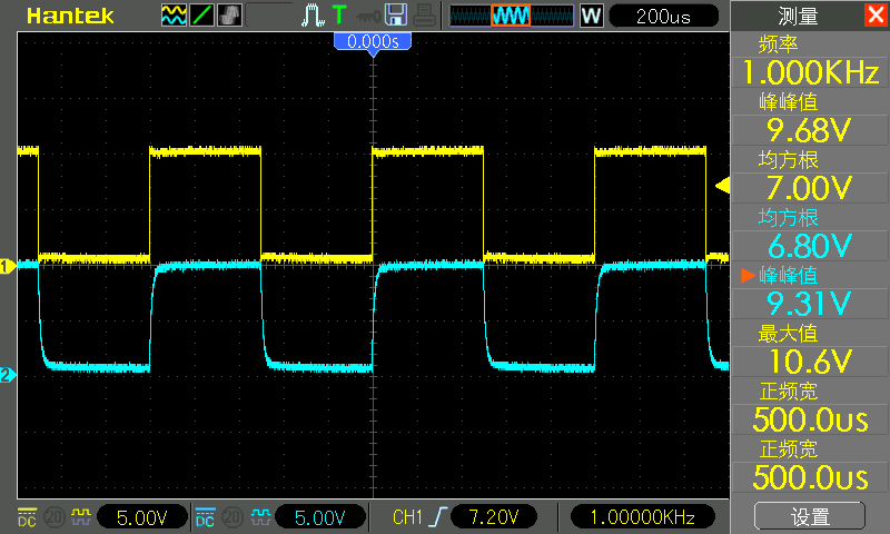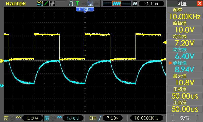 10kHz 波形下,可以更明显地看到电感器正在阻止电流的突然变化。