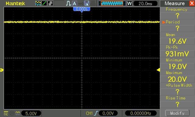 按下开关后,C2 充电,电压升高至19.6V, 约为两倍输入电压: