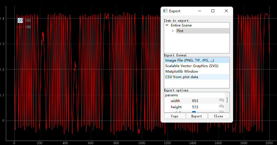 在Export里可以导出波形数据为JPG,或EXCEL文件