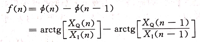 在利用相位差分计算瞬时频率f(n)时,由于计算相位要用到除法和反正切运算,这对于非专用数字处理器来说是较复杂的,在用软件实现时,也可用下面的方法来计算瞬时频率f(n)