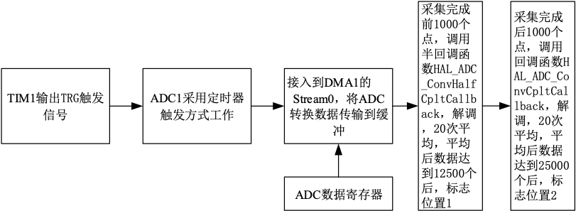 if(g_adc1_dma_complete_flag==1)//采集完前12500个数据后,进入这个部分