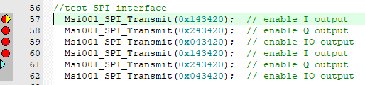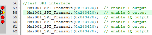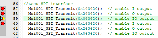 如果IQ输出能够跟随我们写入的寄存器动作,这说明SPI时序正确,硬件也是好的,这时我们就可以进行下一步操作了。