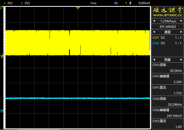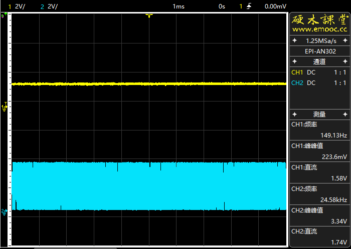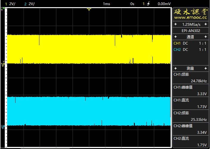 点击CH1或者CH2可以关闭或打开指定通道的波形显示