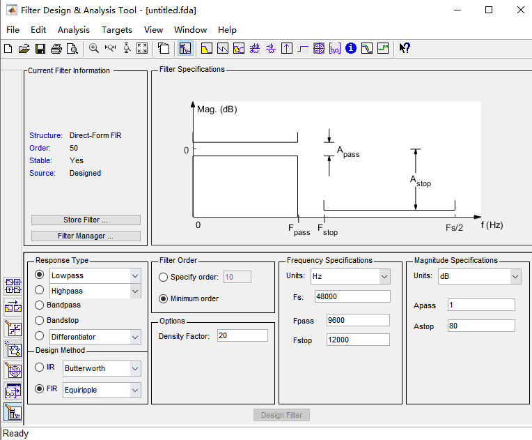 STM32和FPGA不同的地方在于,MCU处理数据流的能力较弱,对于500KSPS的连续FIR滤波软件开销较大,因此在STM32程序中我们先抽取降速后再进行FIR滤波(下一节介绍),降低系统的运算量。