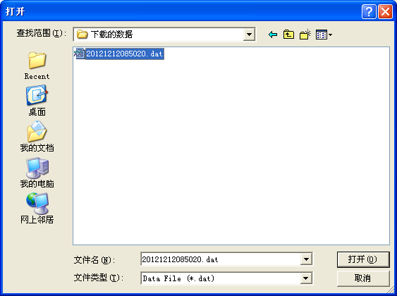 4.打开数据:在图4.4中,也可以通过点击“打开数据”按钮,查看已保存在PC机中的历史数据,如图4.11所示。