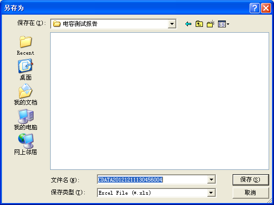 5.导出报告:在图4.8中,选择一行电容数据后点击“导出报告”生成测试报告文档。电容数据文件名以CDATA开头,如图4.12所示。