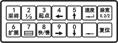 光标移动键:“↑”“↓”:按此两键竖形光标将下面的波形向上或向下移动,用于波形的重合和分离。“←”“→”光标左右移动键:按此二键光标将向左、向右移动。