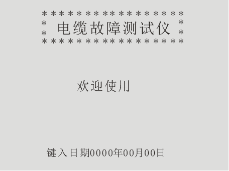 0-9数字键:上电复位时,数字键可以键入年、月、日,在测试状态(非菜单状态,下同),测故障、测全长,当屏幕左上角显示“键入速度000”时,用数字键可以键入已知速度值;在脉冲速度状态,用数字键可以键入已知电缆长度。总之,当屏幕提示需键入数据时,0-9键就为数字键,否则就为其它功能键。