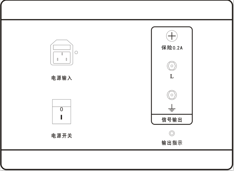 【电源输入】:信号发生器工作时需要外接AC220V电源,该电源插座下部方框内有一保险丝(2A)。