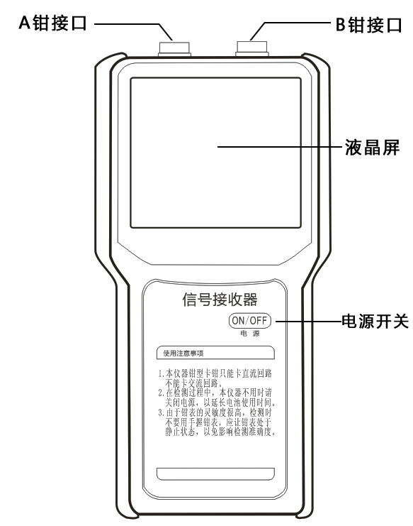 5. 在检测过程中,钳表和信号接收器不用时请关闭电源,以延长电池的使用时间。