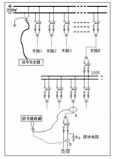 根据直流系统接地故障的情况,将信号发生器接到靠近蓄电池输出端的母线和地线上。已检测到有接地但回路走向较远的支路,为提高检测精度,可把信号发生器接在离故障区域更近的支路始端的直流保险出口处,或回路下面的直流小母线上。检测时,应使信号发生器始终接在直流支路的电源端,而故障检测器和钳表始终在直流支路的负荷端进行检测。