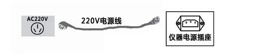 仪器面板上装有仪器供电电源插座(带2A保险),仪器电源支持AC220V或AC380V电源输入,仪器会根据输入的电源进行自适应调整。