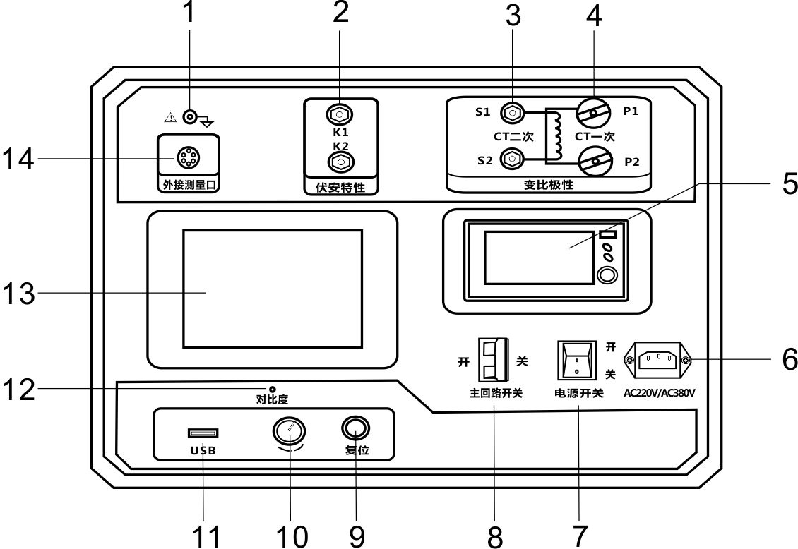 1.接地端子 | 2.伏安特性接线柱 | 3.CT二次侧接线柱 |