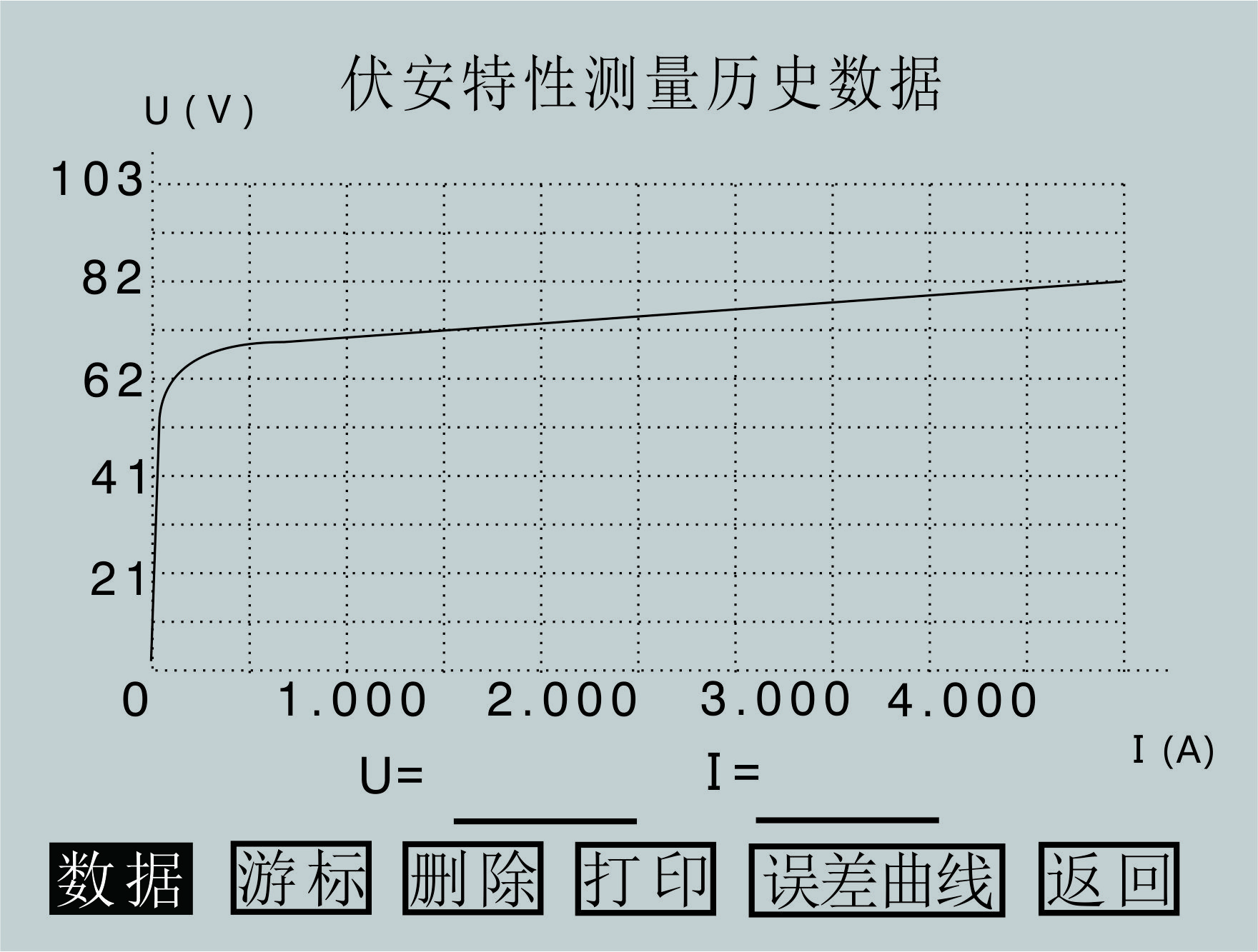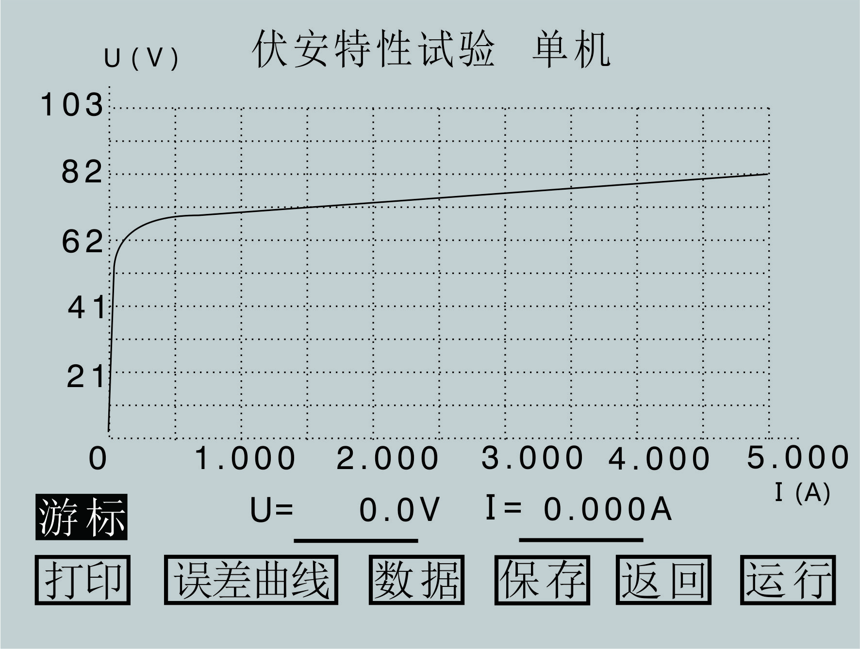 试验结束后,屏幕显示伏安特性试验曲线,如图3.7所示。该界面上各操作说明如下: