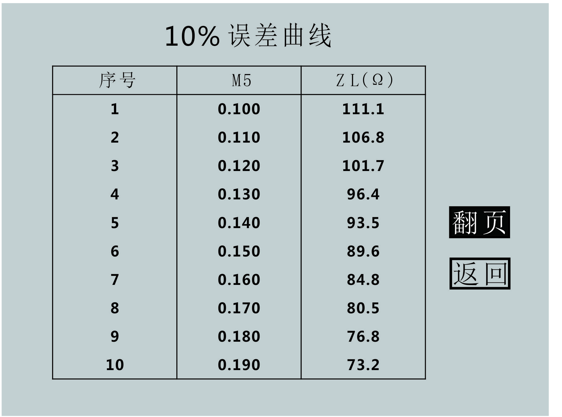 图3.1110%误差曲线数据界面