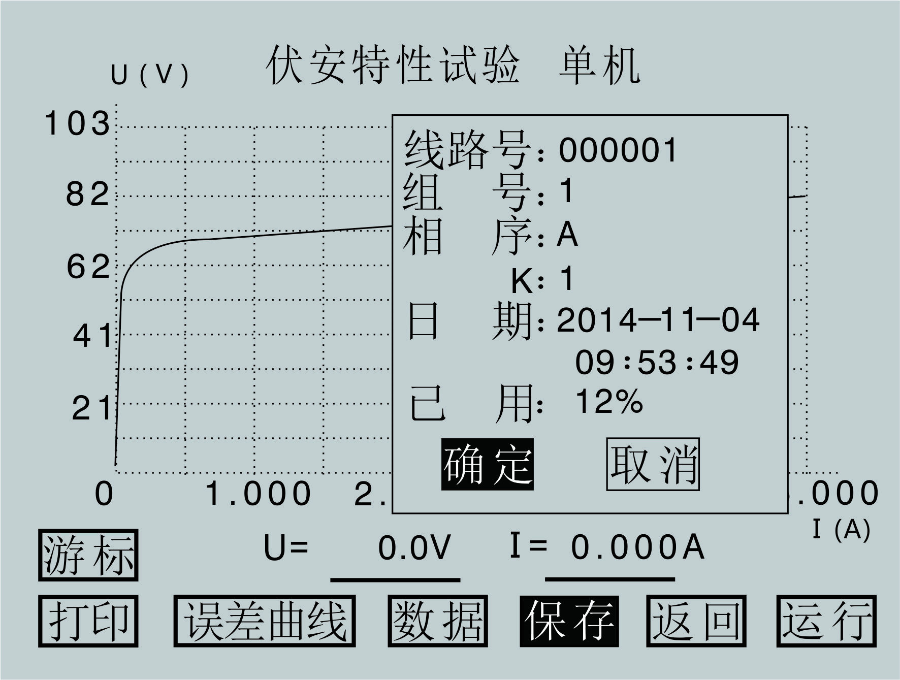图3.7伏安特性试验结果操作界面