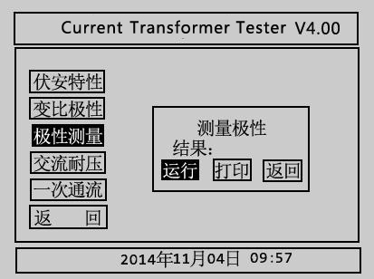 1.运行:通过旋转鼠标将光标移动至运行选项并按下,仪器将自动进行变比极性试验。