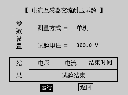 返回:通过旋转鼠标将光标移动至返回选项并按下,仪器自动返回到上一级电流互感器伏安特性试验参数设置界面。