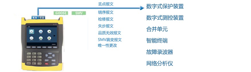1) 数字保护装置测试:可进行 SV 采样检测、GOOSE 功能检查、GOOSE 配置 文本检测、装置发信功能检测、保护功能检测、检修功能检测等