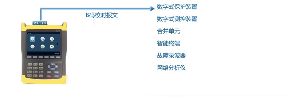 此功能仪器会输出 B 码校时报文供给数字式保护设备、数字式测控设备、合 并单元、智能终端、故障录波器等。用以校验目标测试设备的守时功