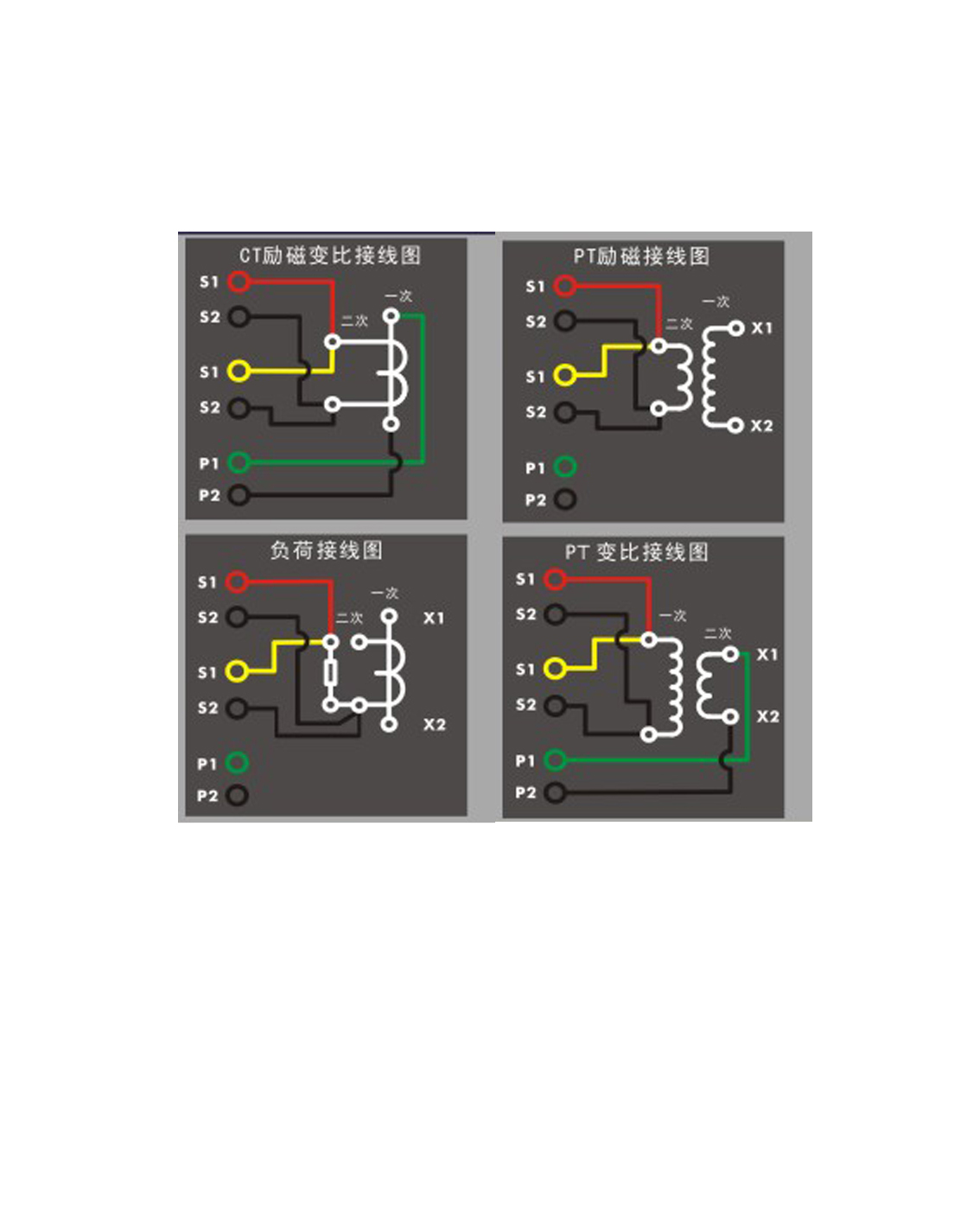 第一步:根据表2.1描述的CT试验项目说明,依照图2.1进行接线(对于各种结构的CT,可参考附录D描述的实际接线方式)。