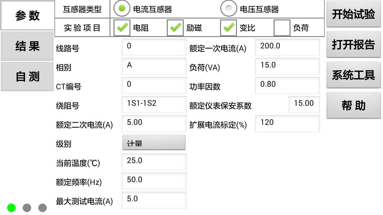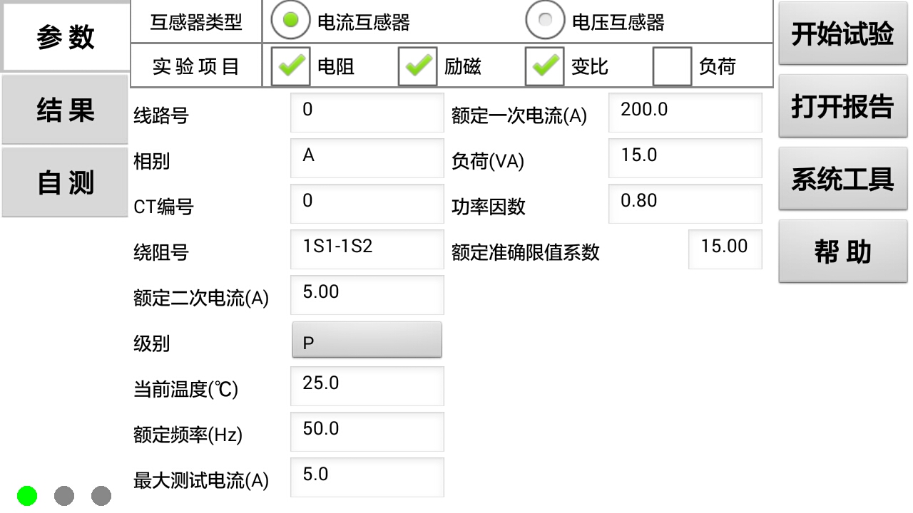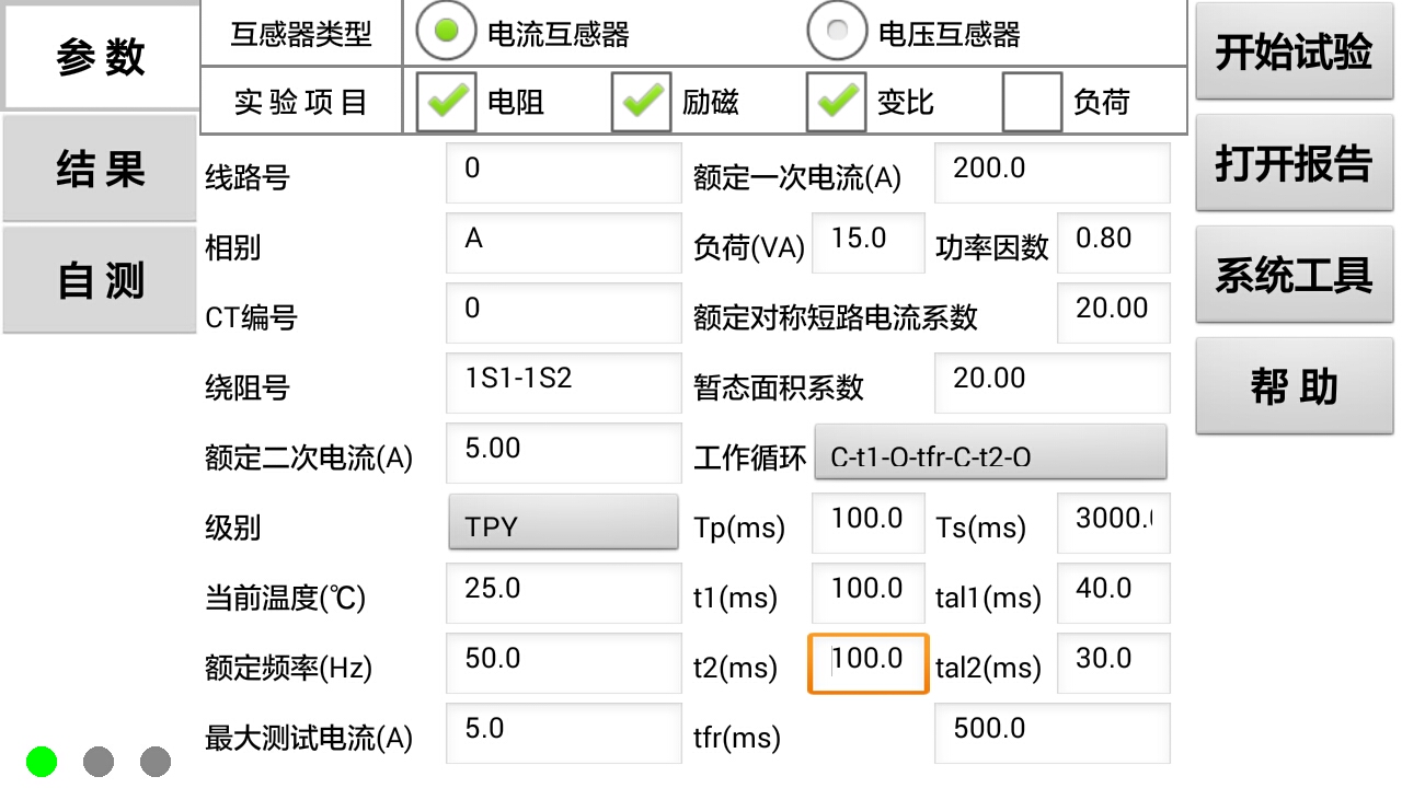 P级、TPY级和计量类CT的试验参数设置界面分别如图2.2、2.3和2.4。