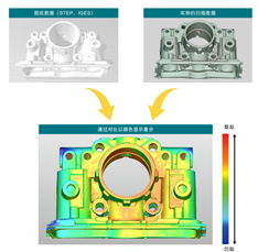 3D对比:对比产品与CAD,良品与不良品之间的3D差异,做失效分析、修模等用途
