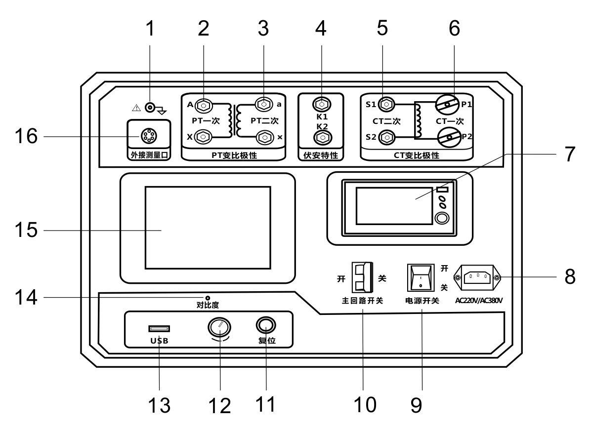 4.伏安特性接线柱 | 5.CT二次侧接线柱 | 6.CT一次侧接线柱 |